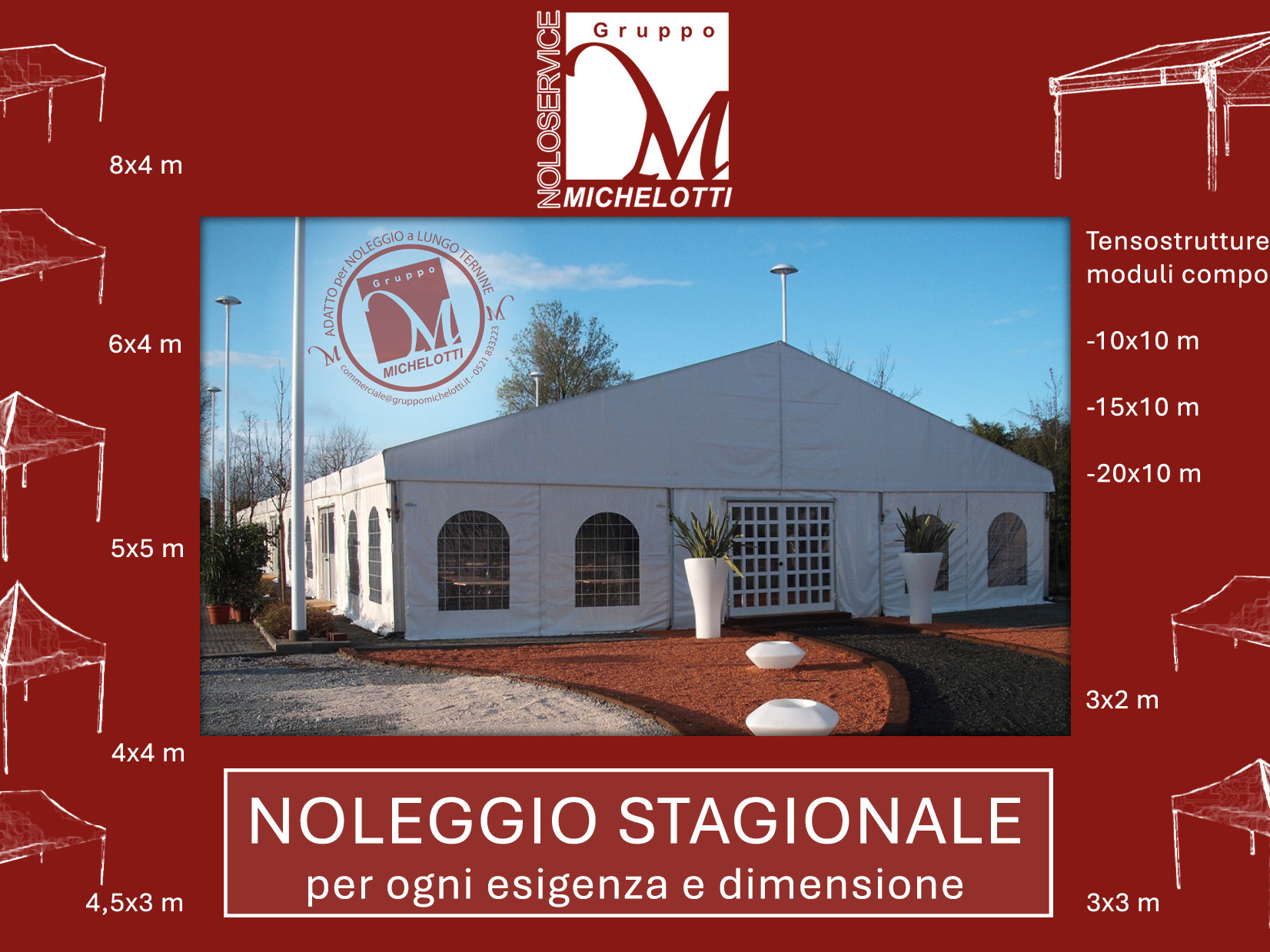 Noleggio delle migliori attrezzature e strutture per esterno dedicate al catering: eventi, cerimonie, matrimoni e meeting.