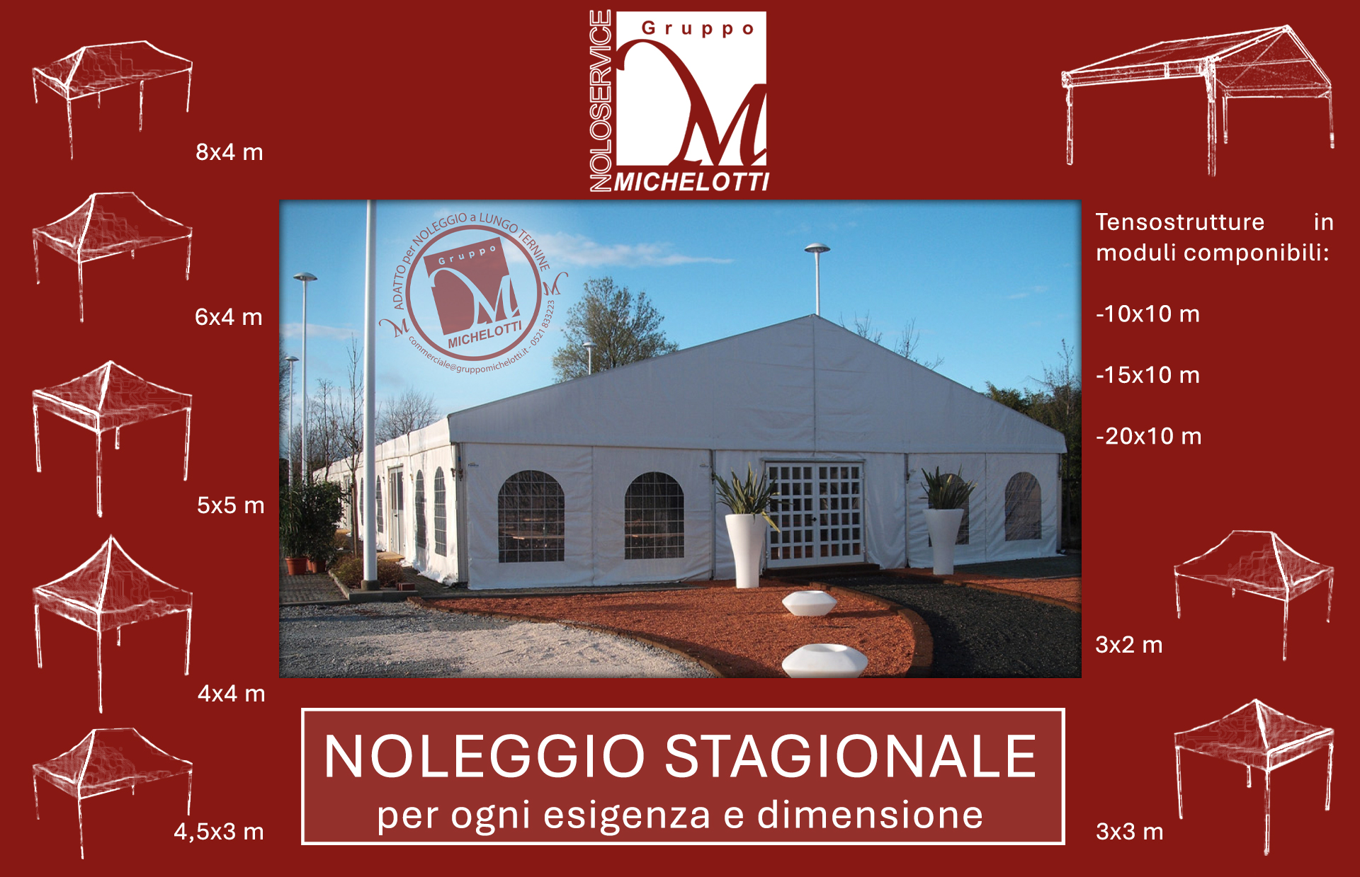 Noleggio delle migliori attrezzature e strutture per esterno dedicate al catering: eventi, cerimonie, matrimoni e meeting.