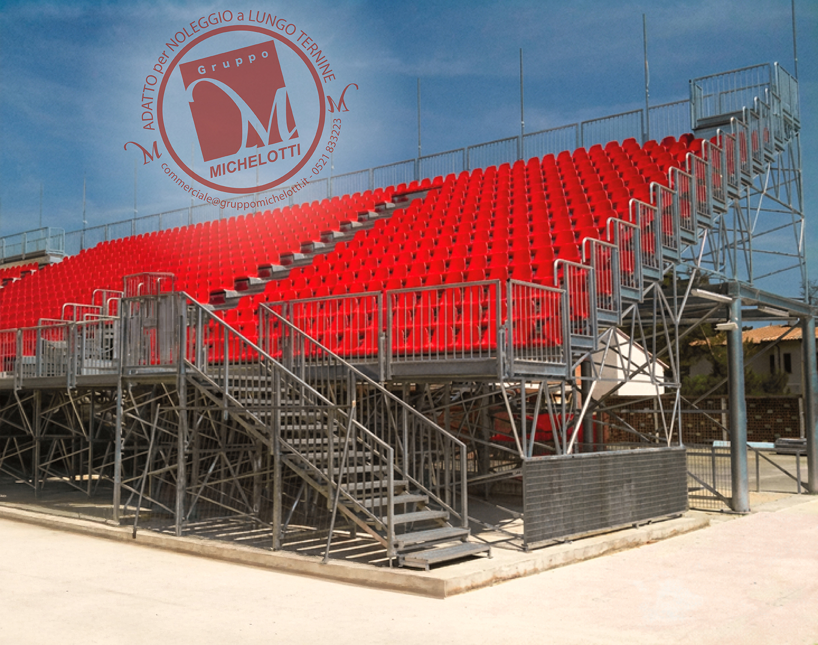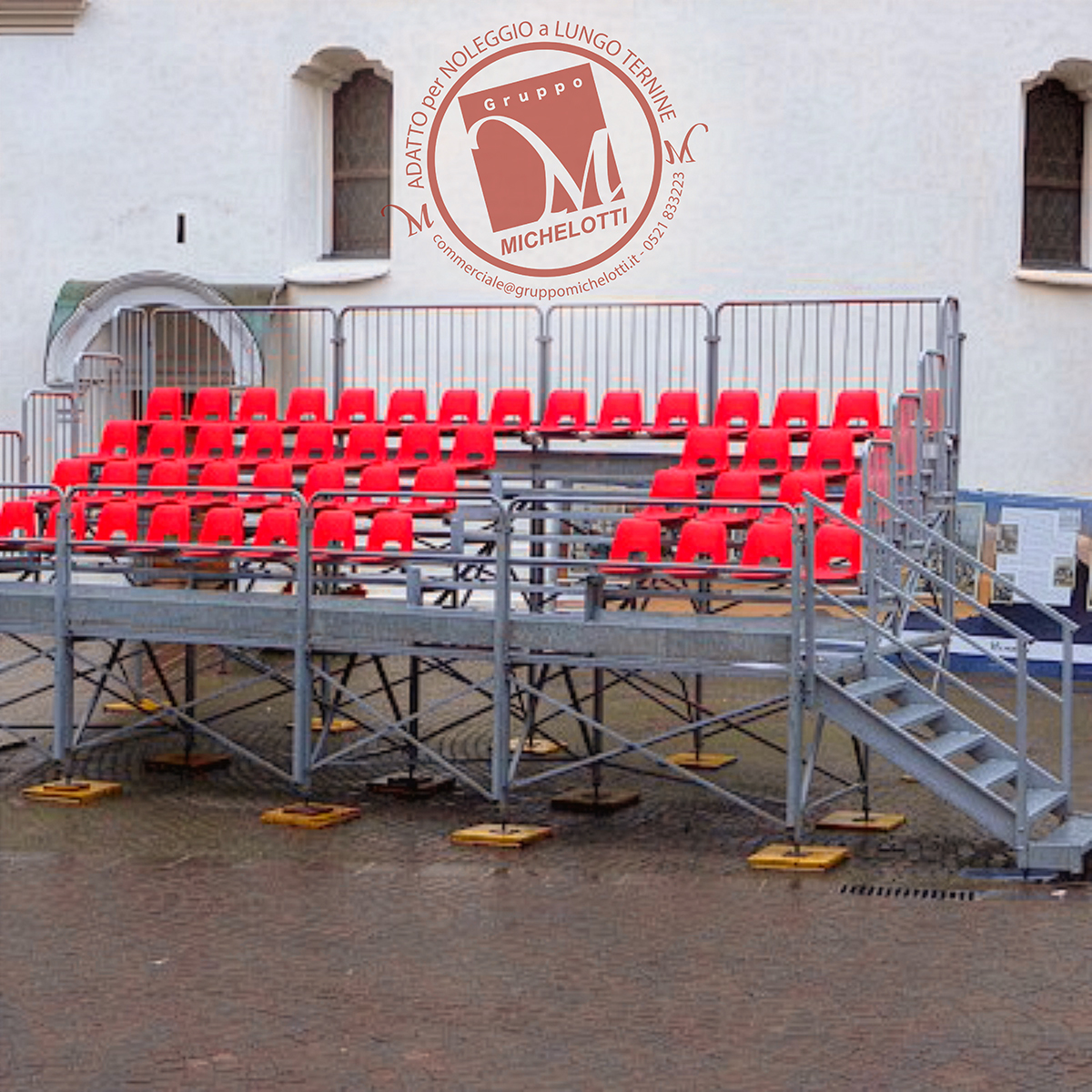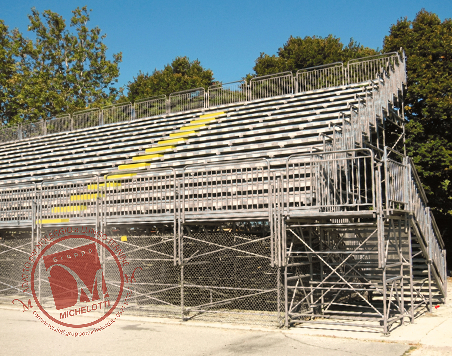La buona riuscita di un evento dipende dal punto prospettico dal quale se ne osserva lo svolgimento da parte del pubblico. In questa ottica Gruppo Michelotti fornisce tribune rialzate da terra di m. 1 e m. 2 consentendo di potere scavalcare ostacoli alla vista come muretti, siepi, recinzioni.